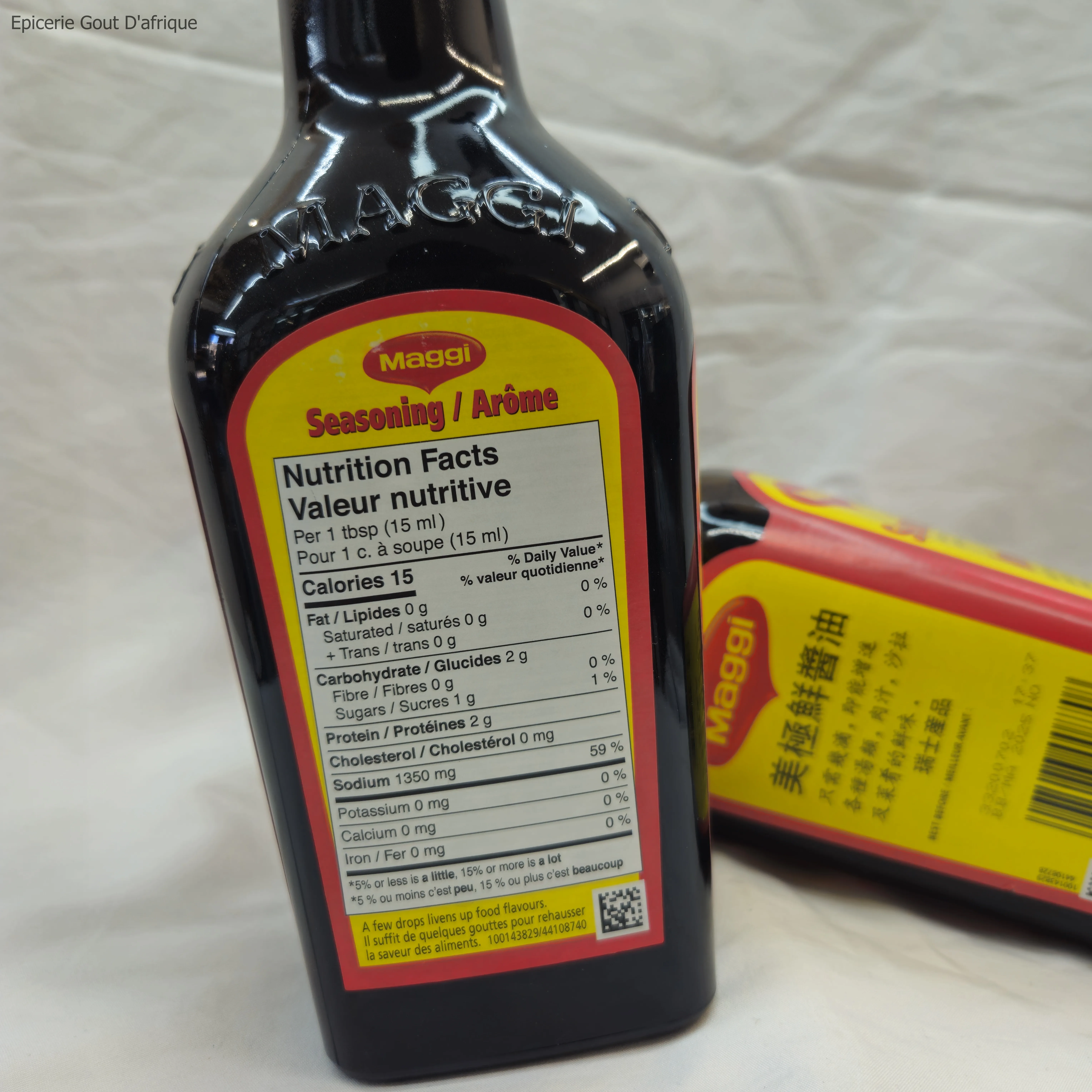 Découvrez l’Arome Maggi, un incontournable de la cuisine africaine et internationale, disponible sur votre boutique "Épicerie Goût d’Afrique" au Canada. Ce condiment emblématique est idéal pour rehausser la saveur de vos plats, qu’il s’agisse de sauces, de soupes, de viandes ou de légumes. Son goût unique, riche et savoureux, ajoute une touche irrésistible à vos recettes, tout en sublimant les saveurs traditionnelles.
