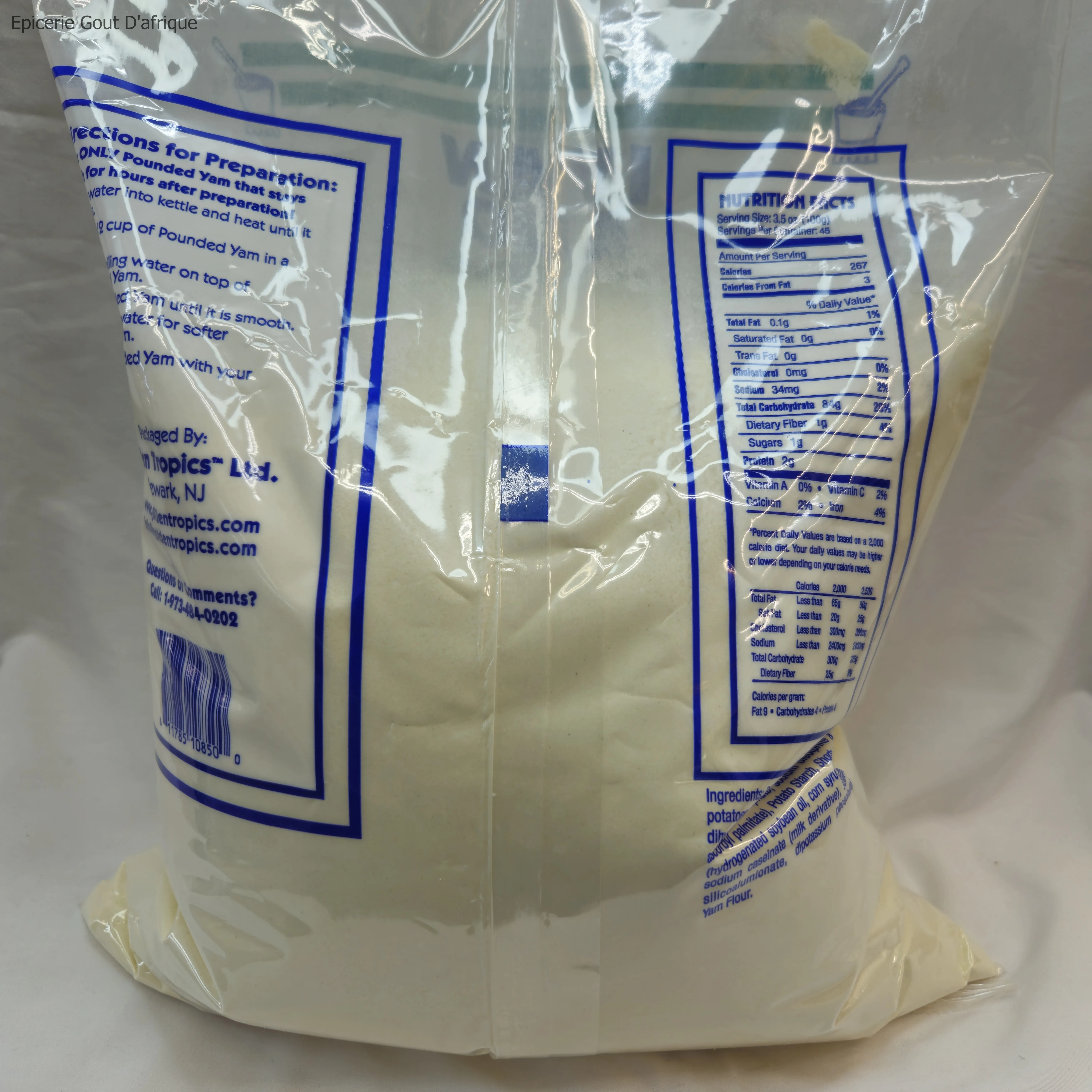 Appréciez la richesse et l'authenticité du Iyan Ado, un produit phare de la cuisine africaine, disponible sur votre boutique "Épicerie Goût d’Afrique" au Canada. Fabriqué à base d'igname, cet aliment traditionnel est une excellente source d'énergie et un incontournable pour accompagner vos plats favoris.