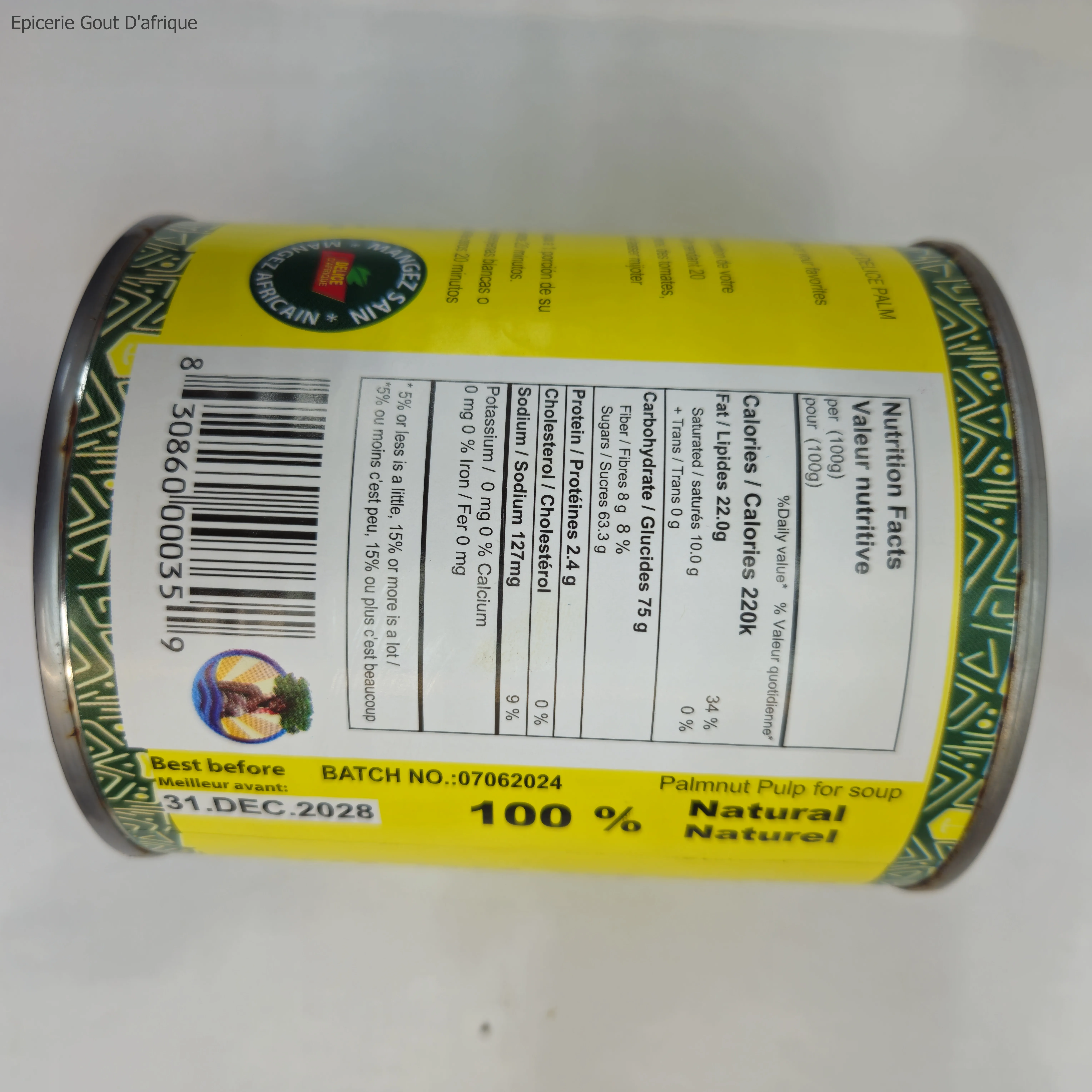 La Sauce Graine est une spécialité culinaire d'Afrique de l'Ouest, élaborée à partir de graines de palmier, souvent utilisées dans des plats traditionnels. Cette sauce épaisse et savoureuse est un incontournable dans la préparation de soupes et de ragoûts, apportant une riche profondeur de goût et une texture onctueuse. La Sauce Graine se marie parfaitement avec des viandes, du poisson, des légumes, ou même des féculents comme le riz ou l'attiéké. Elle est très appréciée pour sa capacité à relever les plats avec une saveur intense et authentique. Disponible chez Épicerie Goût d'Afrique, votre boutique en ligne au Canada, la Sauce Graine est l'ingrédient idéal pour les amateurs de cuisine africaine traditionnelle et savoureuse.